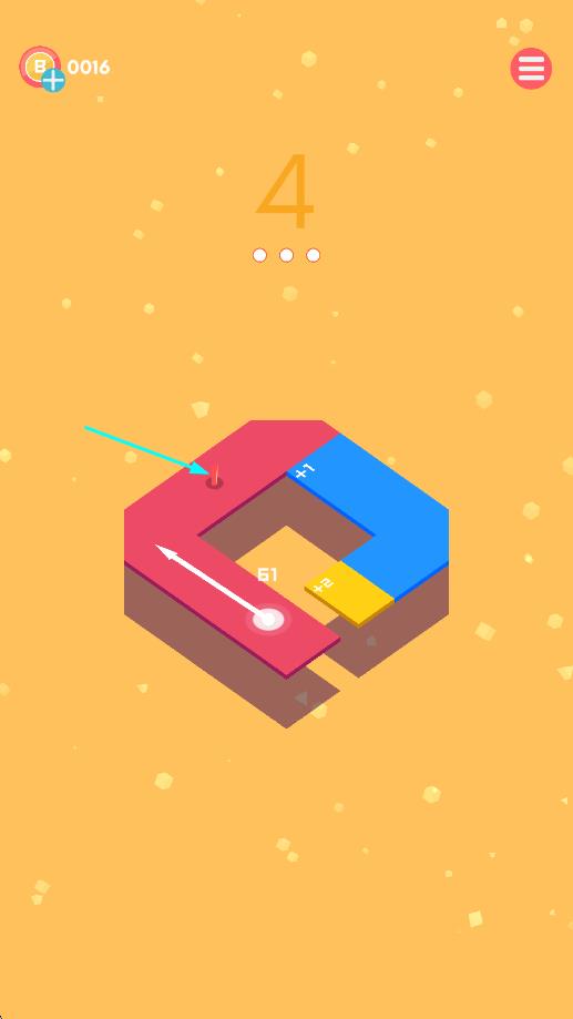 3、第4關(guān)分析紅-藍-黃路徑-操控小球沿箭頭-拾取【+1】增益-按路線規(guī)劃推進闖關(guān)。
