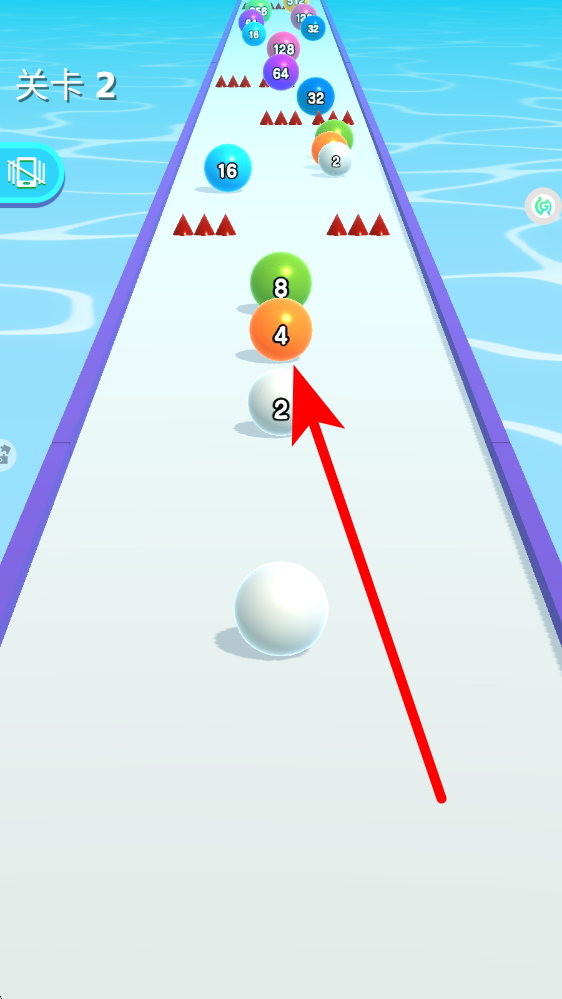 1、進入關(guān)卡,操控白球移動,撞擊同數(shù)字彈球合并升級,如白球撞數(shù)字2彈球合成4,再撞4合成8,依此規(guī)律,逐步合成高階彈球,提升等級。