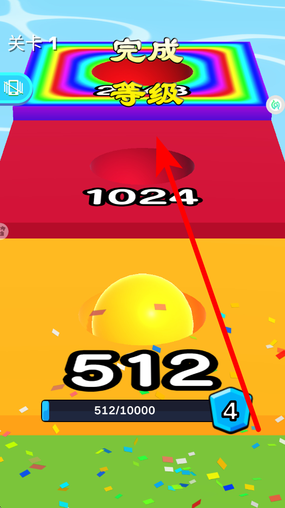 3、推進至關(guān)卡終點,合成指定等級彈球即可通關(guān),通關(guān)后進入新關(guān)卡,難度升級,利用前一關(guān)積累的高階彈球優(yōu)勢,繼續(xù)合成避障,挑戰(zhàn)更高階關(guān)卡。