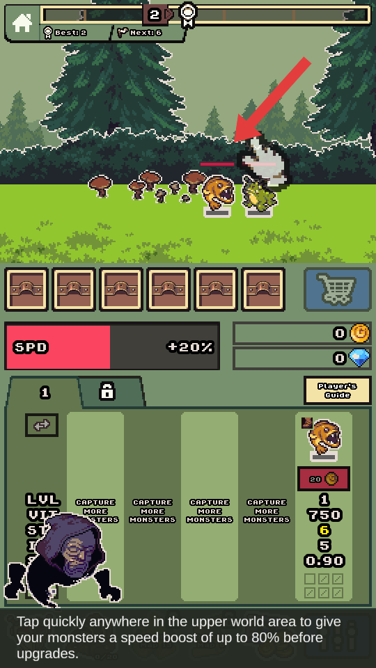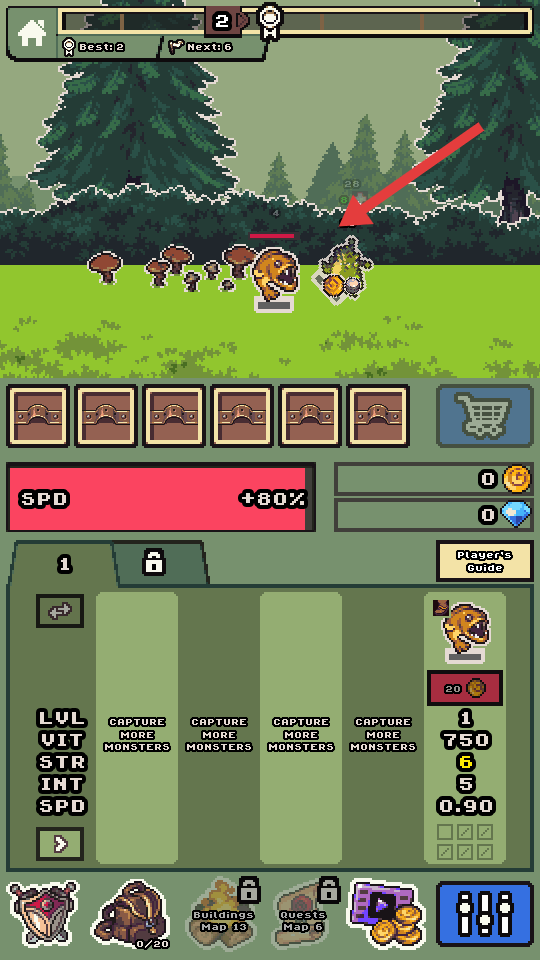 3、推進(jìn)關(guān)卡獲得資源后,用資源升級(jí)怪物的屬性,同時(shí)解鎖更多捕獲欄位,逐步擴(kuò)充怪物隊(duì)伍,增強(qiáng)整體戰(zhàn)斗能力。