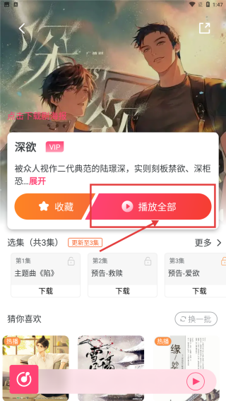 3、在深欲詳情頁(yè),點(diǎn)擊播放全部按鈕,開(kāi)始播放該作品劇集。