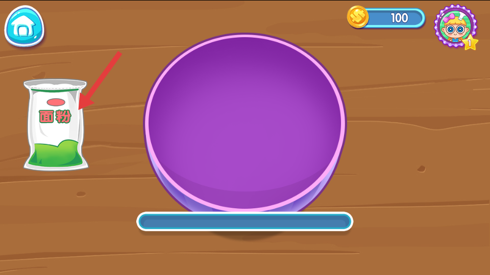 1、進(jìn)入游戲后,在主界面選擇制作披薩選項(xiàng),進(jìn)入操作界面后先取面團(tuán),用搟餅工具將面團(tuán)搟成均勻的圓形披薩底。