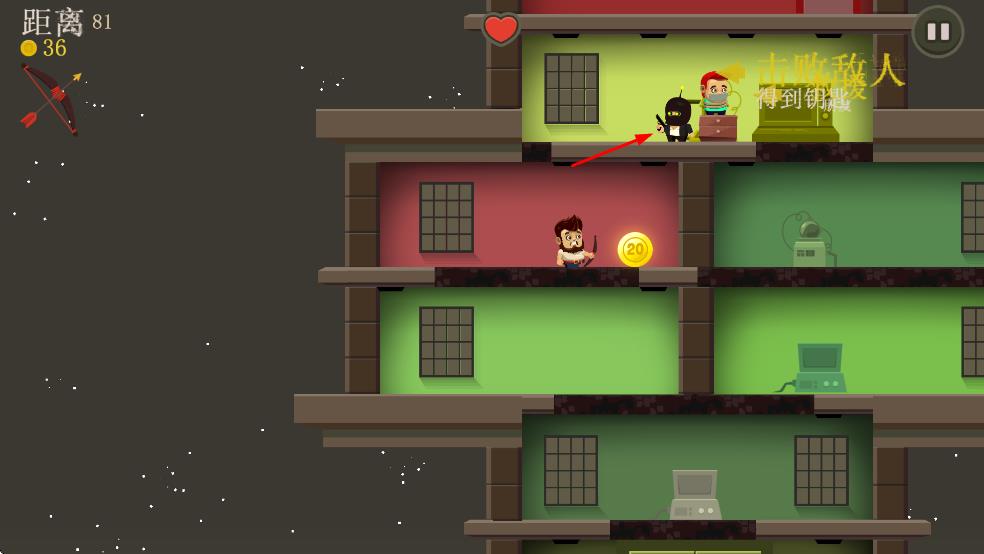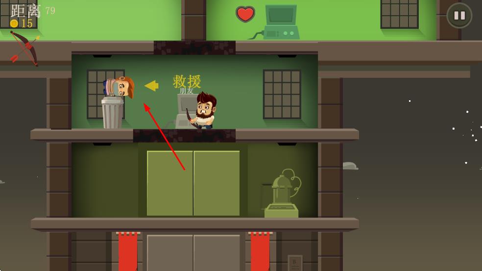 2、救援被困朋友,擊敗敵人獲取鑰匙,開(kāi)啟綠色門推進(jìn)。