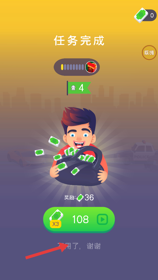 3、收集完指定資金后,找到場景中的撤離點,確認周圍無安保與人群時,點擊“撤離”按鈕,成功離開即可完成關(guān)卡,解鎖下一場景。