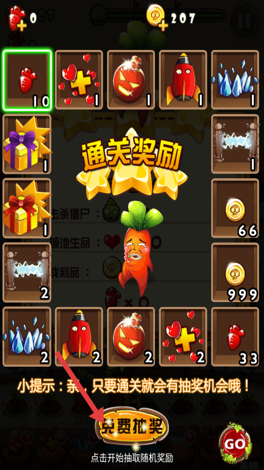 2、戰(zhàn)斗中使用剛解鎖的新植物擊敗當(dāng)前關(guān)卡的BOSS僵尸,戰(zhàn)斗結(jié)束后會(huì)彈出新植物首勝獎(jiǎng)提示框,點(diǎn)擊提示框就能領(lǐng)取對(duì)應(yīng)植物的升級(jí)材料。
