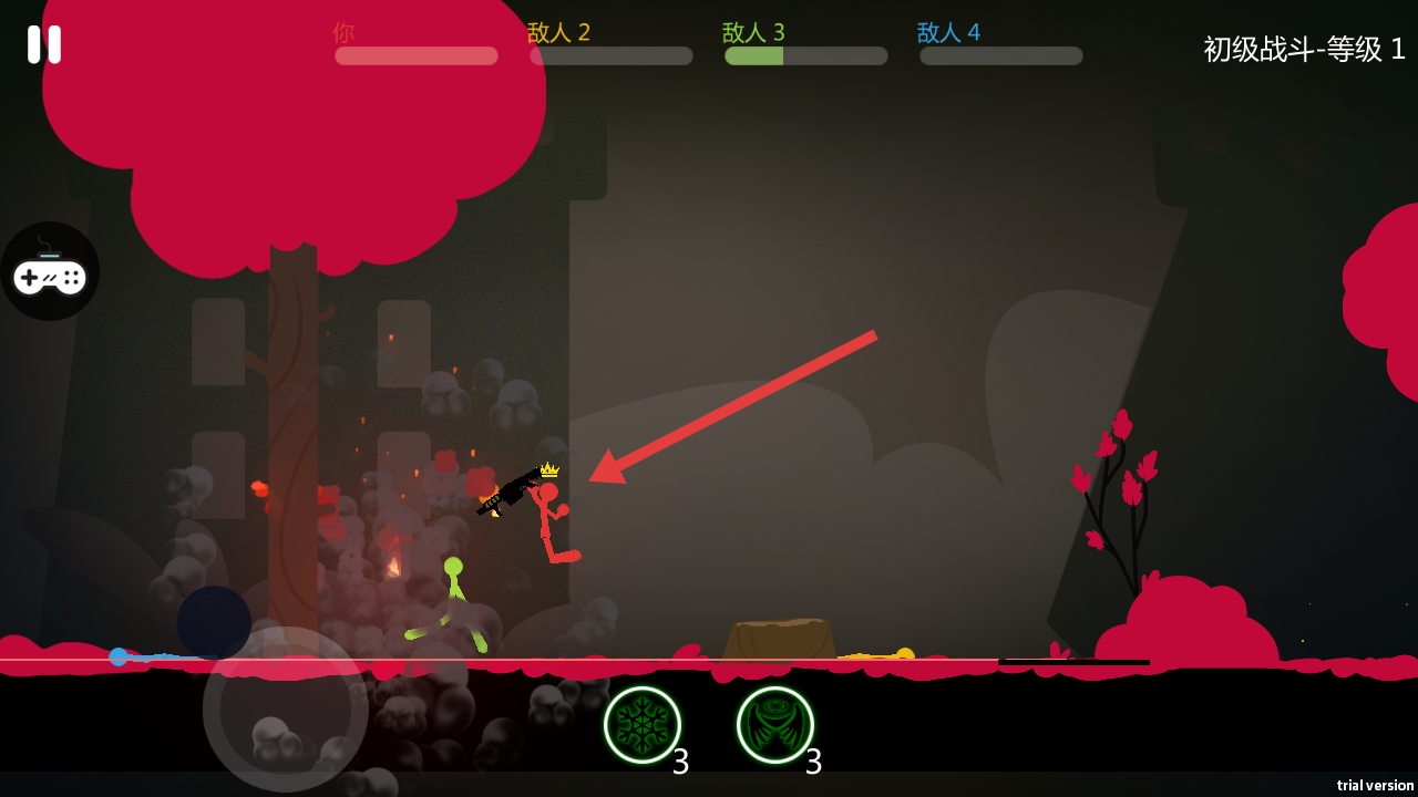 2、視覺風(fēng)格獨(dú)特:雖為火柴人畫風(fēng),但戰(zhàn)斗特效極具辨識度,火焰技能呈橙紅動(dòng)態(tài)效果,雷電技能帶有電流蔓延動(dòng)畫,簡潔卻不單調(diào),讓戰(zhàn)斗視覺更具沖擊力。