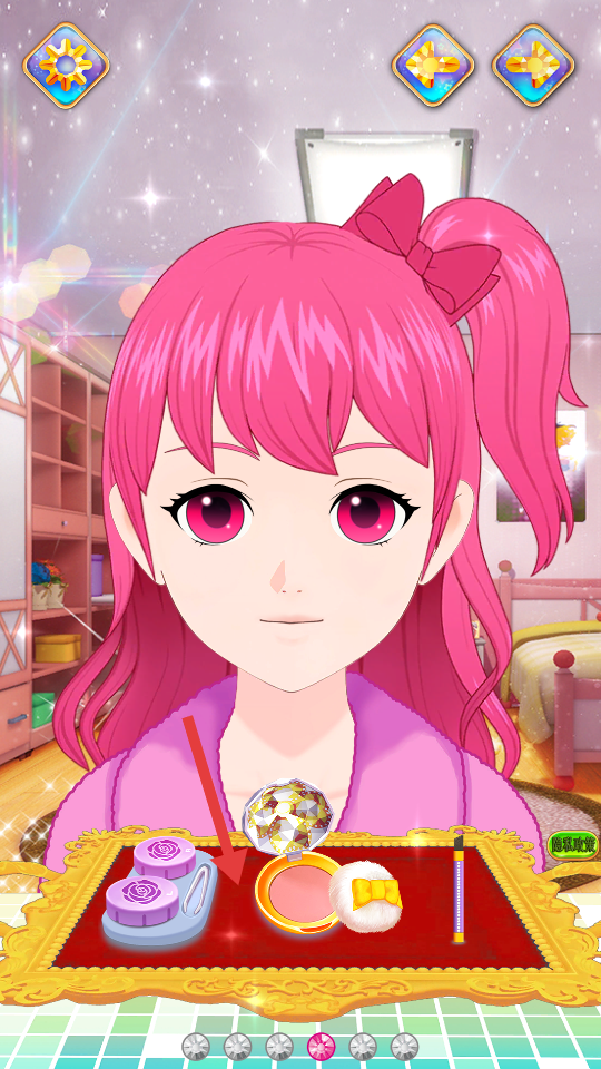 3、化妝互動(dòng)反饋:每完成一個(gè)化妝步驟,公主會(huì)給出可愛(ài)的語(yǔ)音反饋,同時(shí)界面彈出閃光特效與小星星動(dòng)畫(huà),讓孩子在操作過(guò)程中獲得即時(shí)鼓勵(lì),增強(qiáng)化妝設(shè)計(jì)的成就感。
