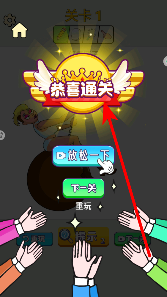 3、成功完成關(guān)卡后,會(huì)出現(xiàn)恭喜通關(guān),之后可選擇進(jìn)入下一關(guān)繼續(xù)挑戰(zhàn),也可選擇其他選項(xiàng),體驗(yàn)新的關(guān)卡,鍛煉創(chuàng)意與操作能力。