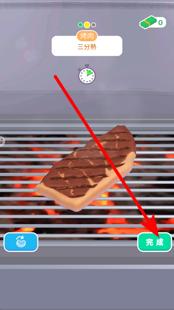 3、腌制完成后,將食材進(jìn)行烤制,按照要求把控烤制程度三分熟,烤制完成后點(diǎn)擊完成,將制作好的菜品提供給顧客完成訂單。