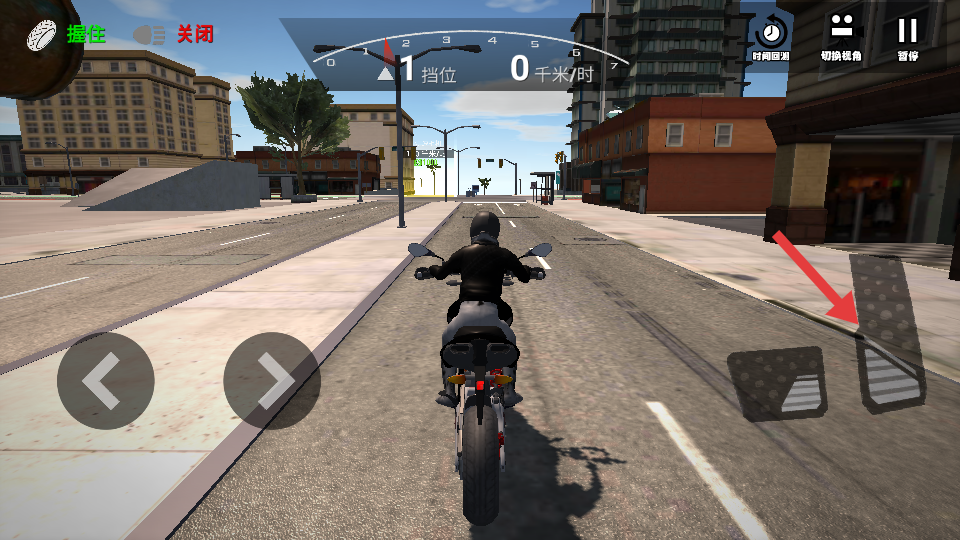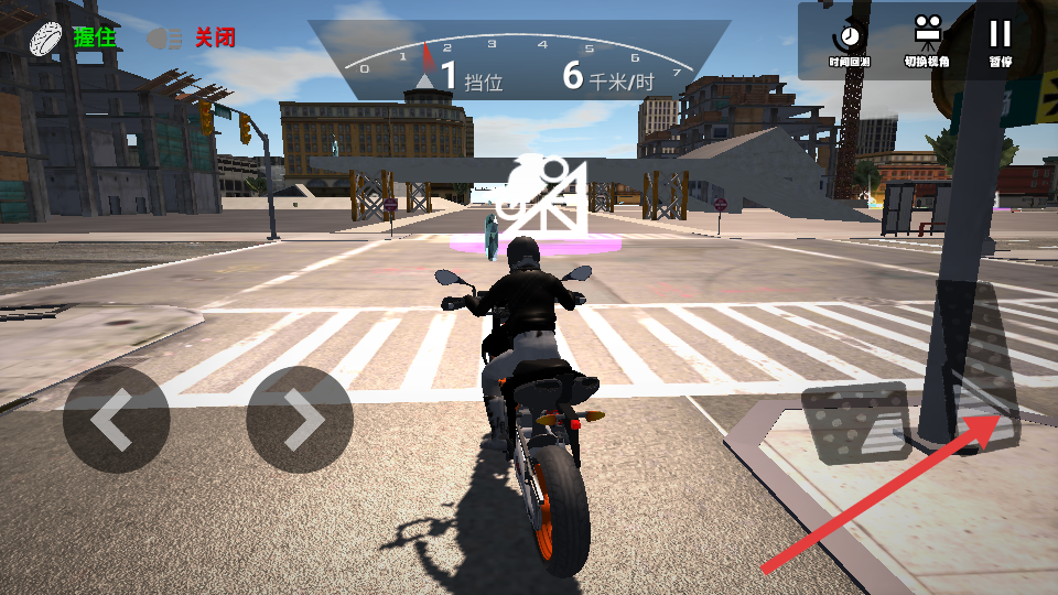2、若選擇自由駕駛模式,可操控摩托在城市地圖中隨意行駛,通過虛擬按鍵控制加速、剎車與轉向,途中還能解鎖隱藏路線;若選擇競速模式,需在指定賽道與對手比拼。