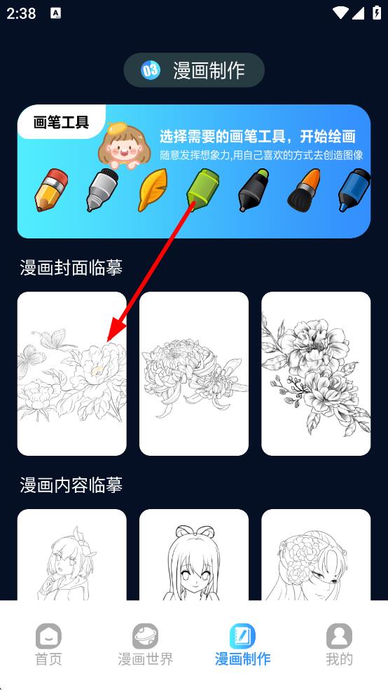 1、在漫畫制作頁面,選擇漫畫封面臨摹中的圖案,進(jìn)入繪畫頁面。