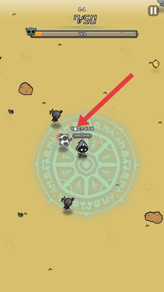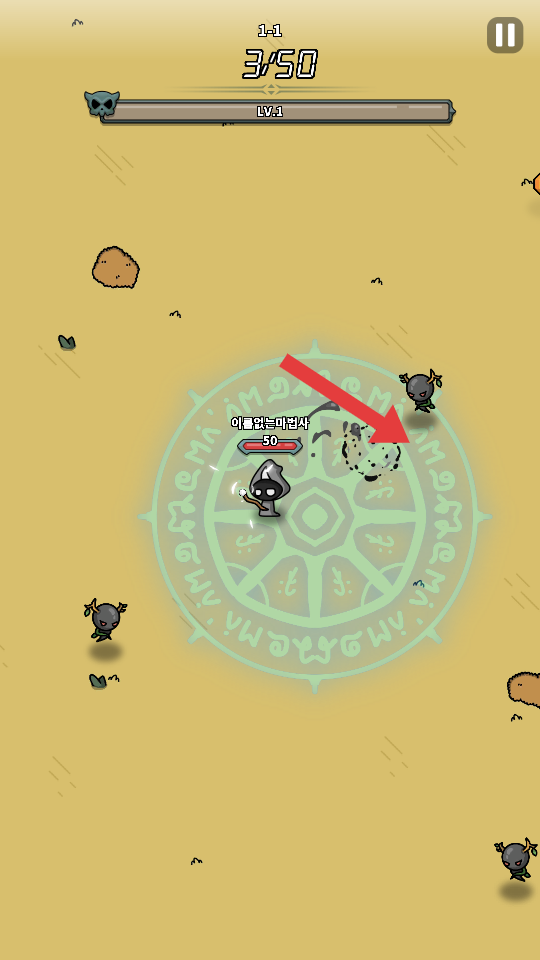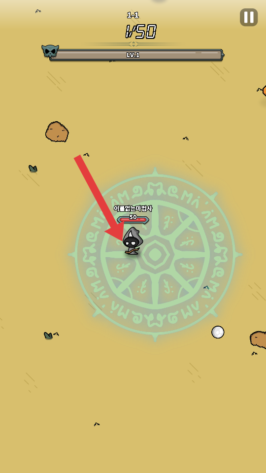 1、進入關(guān)卡1-1后,操控?zé)o名魔法師在帶有符文的圓形區(qū)域熟悉初始位置,準(zhǔn)備應(yīng)對即將出現(xiàn)的敵人。