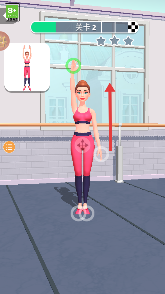 2、表演關(guān)卡中,屏幕會(huì)實(shí)時(shí)出現(xiàn)動(dòng)作提示圖標(biāo),根據(jù)節(jié)奏點(diǎn)擊或滑動(dòng)對(duì)應(yīng)區(qū)域,控制舞者完成踮腳、旋轉(zhuǎn)等動(dòng)作,動(dòng)作精準(zhǔn)度越高得分越高。