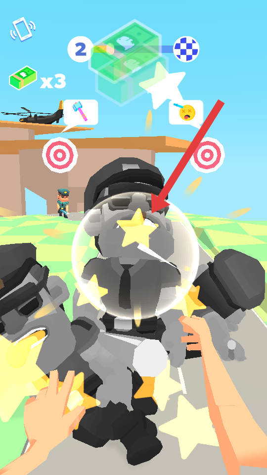 2、遇到警察類敵人時,保持攻擊節(jié)奏,擊敗敵人可增加鈔票數(shù)量,注意背景中直升機等場景的元素。