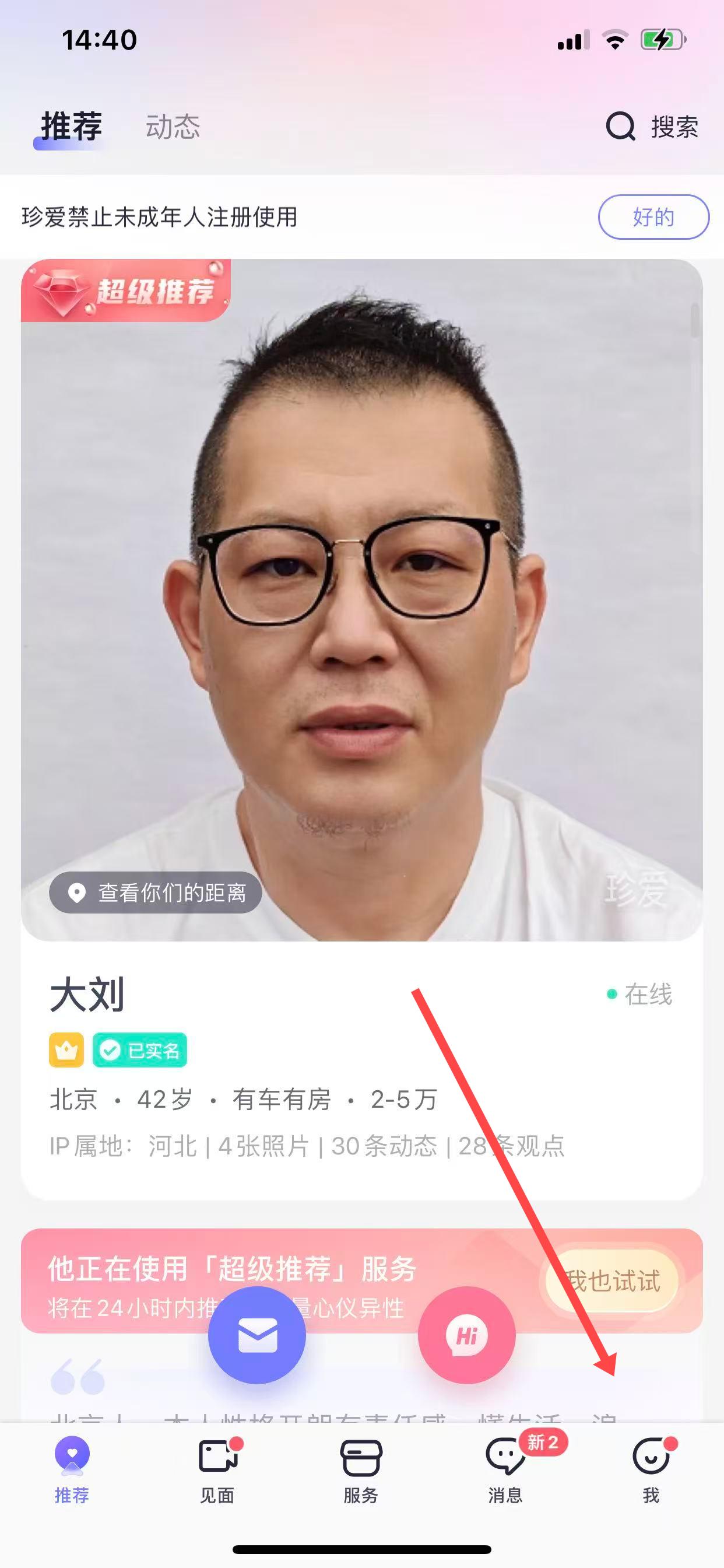 1、日常交友使用:注冊登錄后,完善個人資料,包括興趣愛好、擇偶要求等,然后通過推薦頁面查看系統(tǒng)匹配的對象,主動發(fā)起聊天。