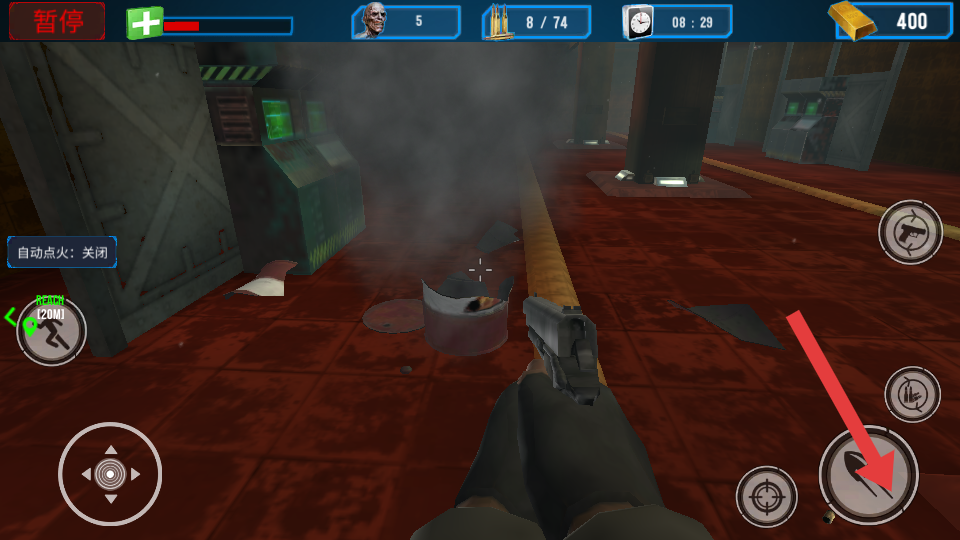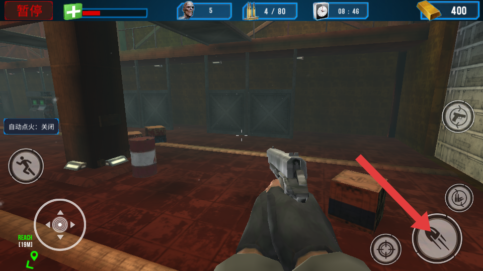 1、在工廠場景中,通過左側(cè)搖桿控制移動,手持槍械探索時留意木箱、油桶等場景元素,關(guān)注生命值與任務(wù)進(jìn)度,為行動做準(zhǔn)備。
