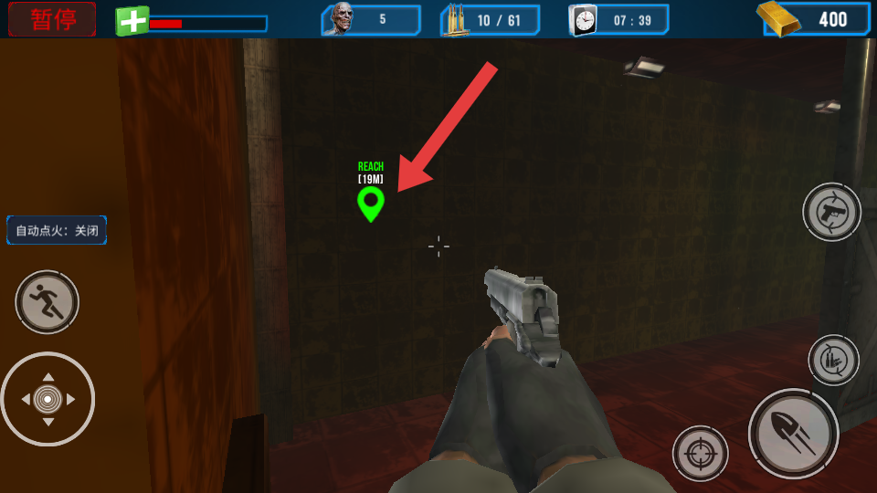 3、探索時跟隨綠色REACH目標(biāo)點的指引移動,朝著目標(biāo)方向前進(jìn),同時保持警惕,應(yīng)對可能會出現(xiàn)的敵人,按指引來推進(jìn)流程。