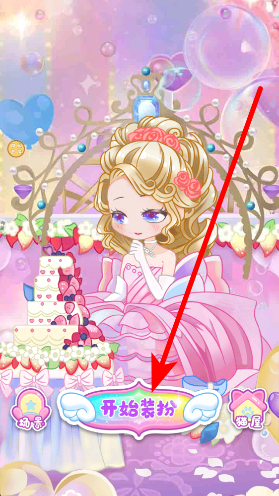 1、開始進入游戲后,點擊開始裝扮,即可開啟角色的裝扮休閑之旅,進入到裝扮的界面,準備為角色挑選各類裝扮服裝元素。