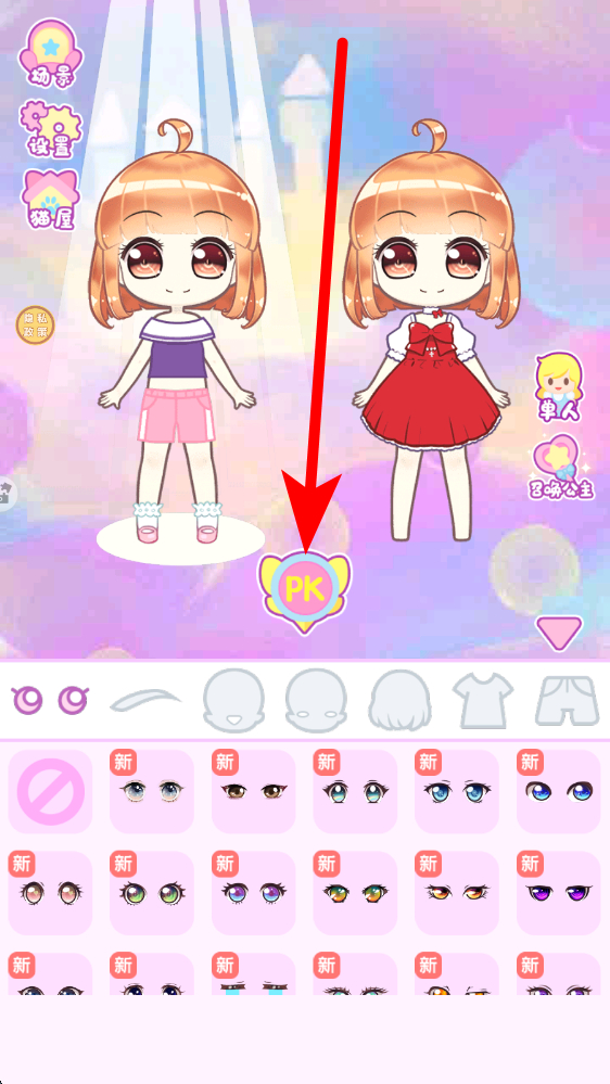 3、完成角色裝扮后,可點擊PK,參與到與其他裝扮成果的比拼中,展示自己的裝扮創(chuàng)意,體驗與他人交流互動的樂趣,不斷提升裝扮技巧。