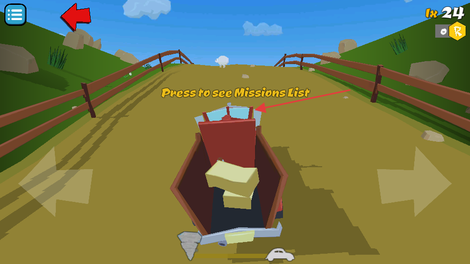1、進(jìn)入游戲后,可點(diǎn)擊屏幕查看任務(wù)列表,借助左右箭頭按鈕控制車輛在鄉(xiāng)間道路移動(dòng),留意車上裝載的物品。