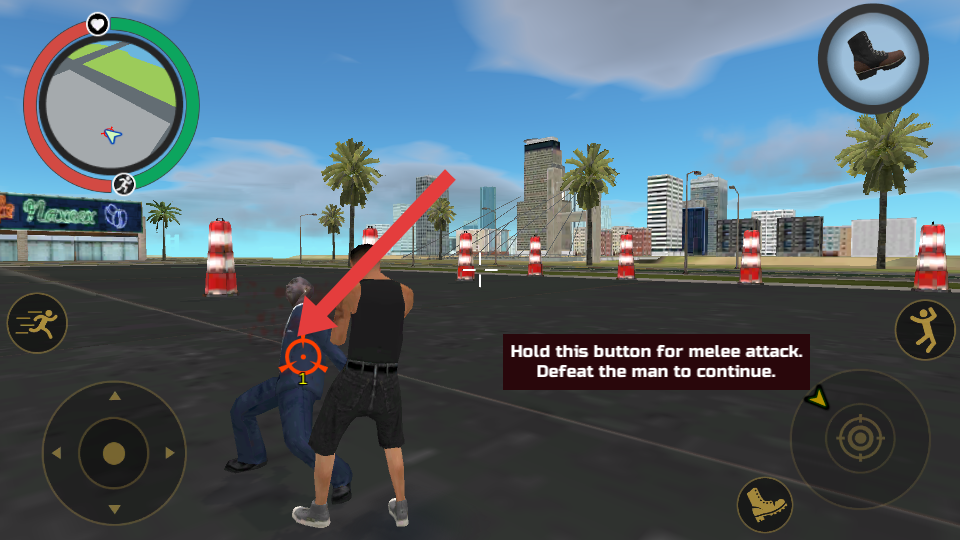1、近戰(zhàn)來(lái)進(jìn)行攻擊,按住提示的近戰(zhàn)的按鈕,與敵人近身開啟搏斗,擊敗當(dāng)前敵人以推進(jìn)流程。