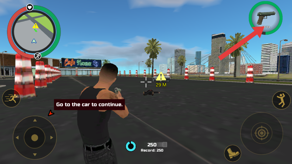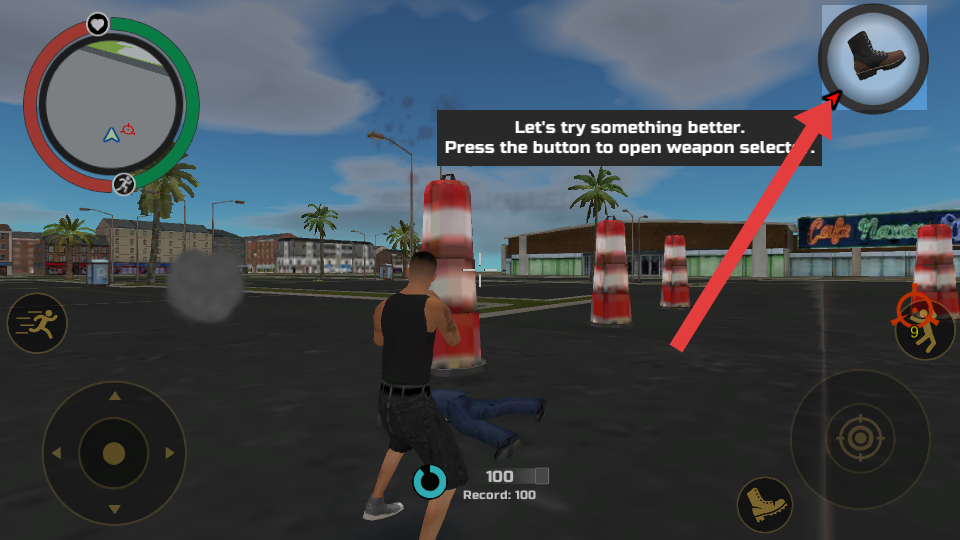 2、切換武器,按提示點(diǎn)擊右上角按鈕打開武器選擇器,選用更高效的武器如槍械,提升戰(zhàn)斗能力。