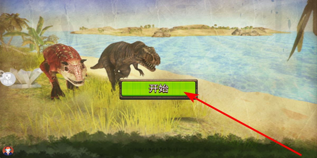 1、新人開始游戲進入應(yīng)用后,點擊開始按鈕,即可進入恐龍島場景,開啟驚險刺激的逃離之旅,此時要做好應(yīng)對恐龍的準(zhǔn)備。