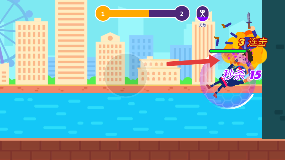 3、設(shè)有無敵buff右上角顯示對應(yīng)圖標,可讓角色在短時間內(nèi)免疫敵方傷害;戰(zhàn)斗達成目標時會彈出太棒了鼓勵文字提示。