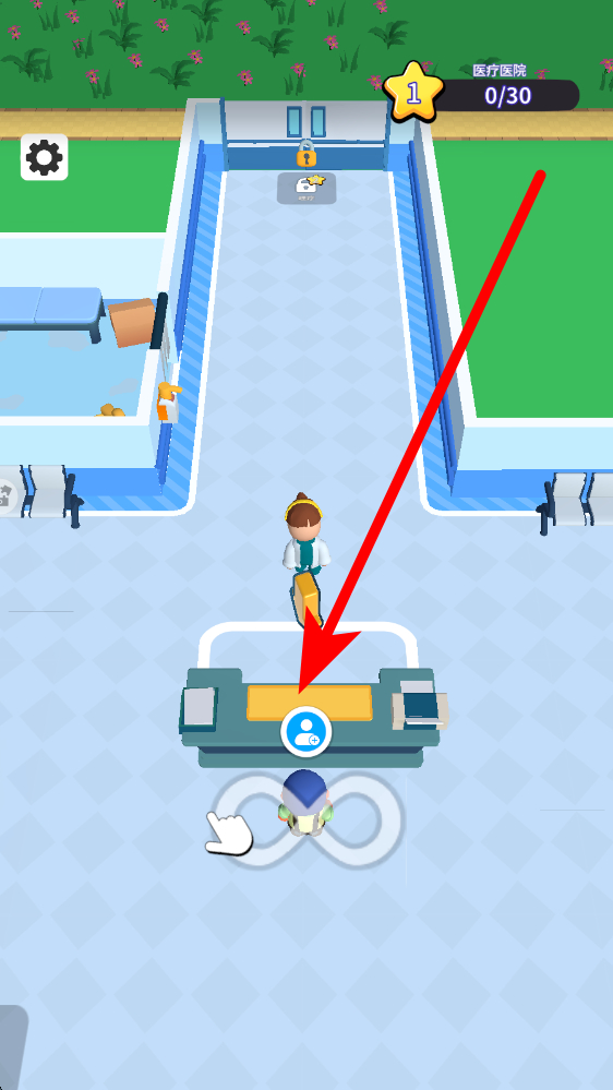 1、新人進(jìn)入游戲后,操控角色來(lái)到醫(yī)院前臺(tái)位置,點(diǎn)擊前臺(tái)圖標(biāo),開(kāi)始接收病人,開(kāi)啟醫(yī)院的日常運(yùn)營(yíng)工作,為后續(xù)治療病人做準(zhǔn)備。
