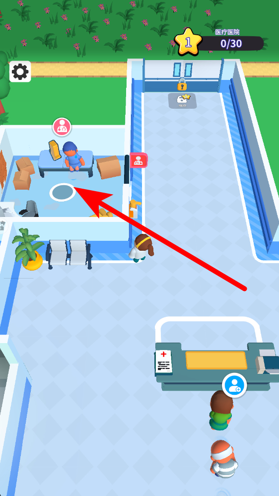 2、接收病人后,按照提示指引病人前往對(duì)應(yīng)的治療區(qū)域,比如看到帶有病人標(biāo)識(shí)的房間,將病人引導(dǎo)至此處,讓病人接受相應(yīng)的治療,完成治療任務(wù)。