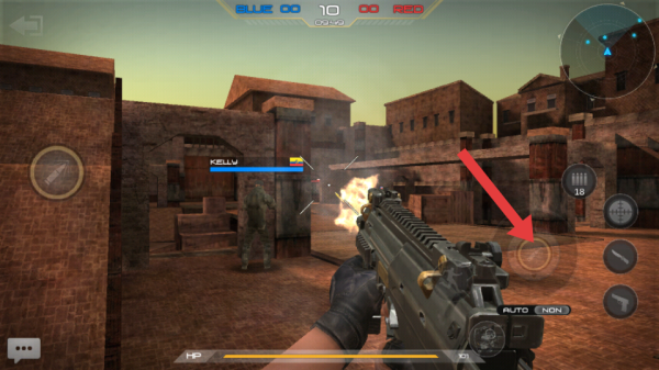 1、右側(cè)配備射擊、武器切換按鍵,帶有槍械、匕首、手槍等圖標(biāo),通過(guò)按鍵配合,可完成移動(dòng)、瞄準(zhǔn)、射擊切換操作。