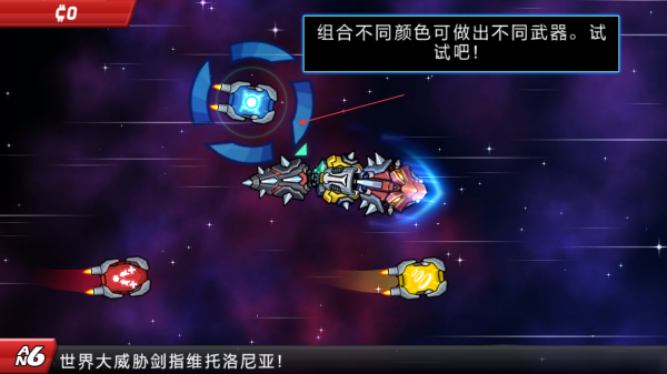 2、依據(jù)提示,嘗試組合不同顏色能量核來(lái)打造多樣武器,應(yīng)對(duì)太空中出現(xiàn)的敵人。