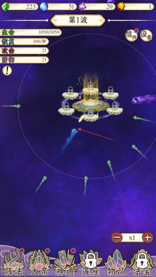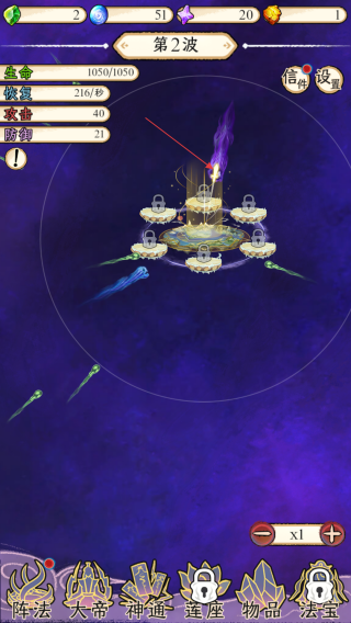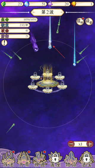 1、第1波,觀察生命,恢復(fù)等數(shù)值,操控攻擊方向,瞄準(zhǔn)來(lái)襲敵人,借助法陣等抵御,守護(hù)祖星。