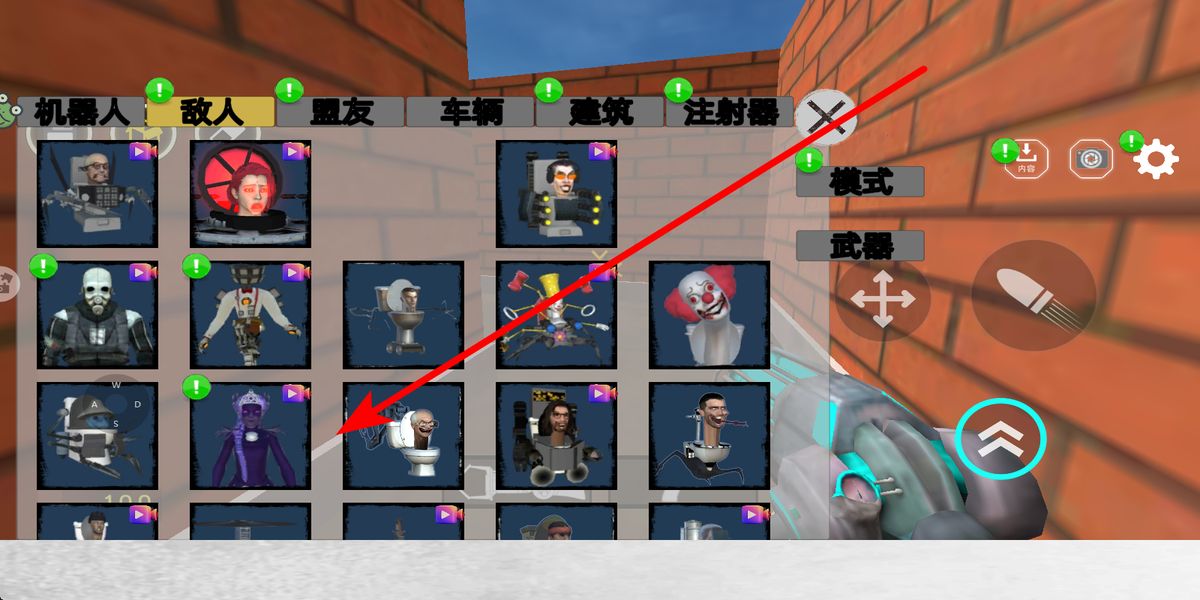 3、當(dāng)需要放置模組時(shí),打開(kāi)模組選擇界面,里面有機(jī)器人、敵人等各類模組可供選擇,將其放置到城市中的相應(yīng)位置,打造出獨(dú)特的城市場(chǎng)景。
