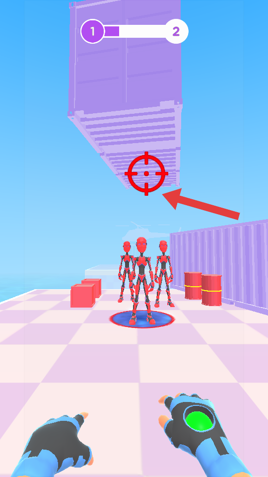 1、瞄準(zhǔn)紅色機(jī)器人進(jìn)行快速攻擊,通過高頻的打擊,加快敵人消耗速度,為后續(xù)節(jié)省時(shí)間,助力快速升級。