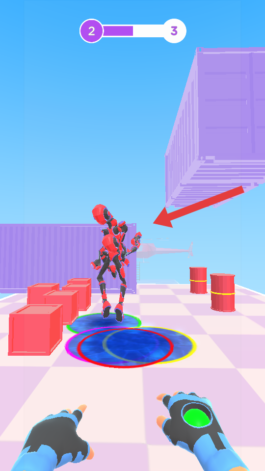 2、戰(zhàn)斗時(shí)利用地面出現(xiàn)的彩色圓環(huán)區(qū)域,借助其觸發(fā)的效果,更高效擊飛機(jī)器人,從而加快的升級節(jié)奏。