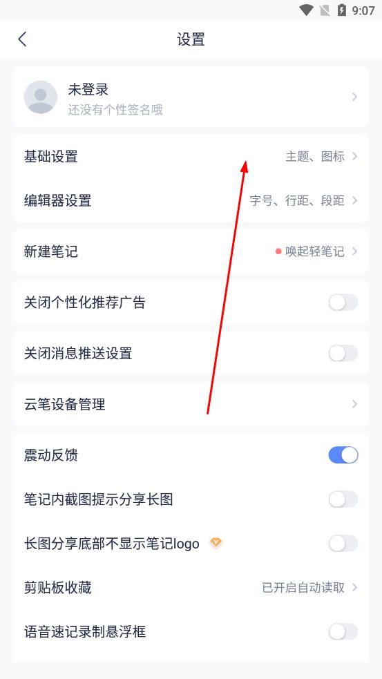 2、在設(shè)置頁面中,點擊基礎(chǔ)設(shè)置選項。