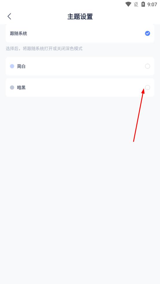 4、找到暗黑模式,點擊圓圈進行選擇,即可開啟夜間模式。