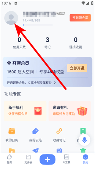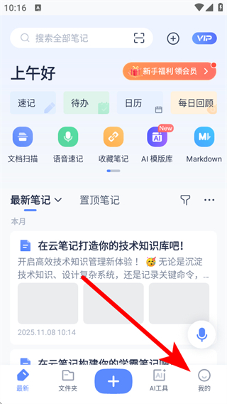1、打開有道云筆記APP,點擊右下角我的,進入個人的頁面。