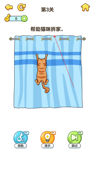 1、進(jìn)入游戲關(guān)卡如第3關(guān),閱讀屏幕上方幫助貓咪拆家的任務(wù)提示。