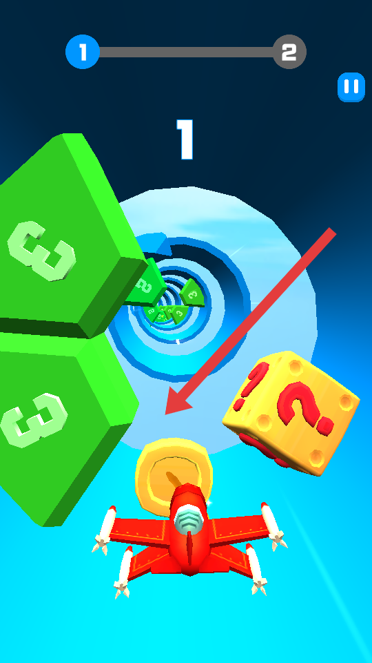 1、操控紅色飛機(jī)進(jìn)入螺旋通道后,優(yōu)先收集帶有數(shù)字的綠色方塊,這類方塊是推進(jìn)關(guān)卡進(jìn)度的關(guān)鍵道具。