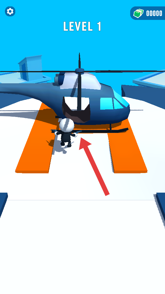 1、進(jìn)入LEVEL1關(guān)卡后,操控持槍小人向停機(jī)坪上的直升機(jī)移動,熟悉角色移動方式與關(guān)卡目標(biāo)場景,直升機(jī)位置。