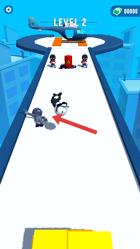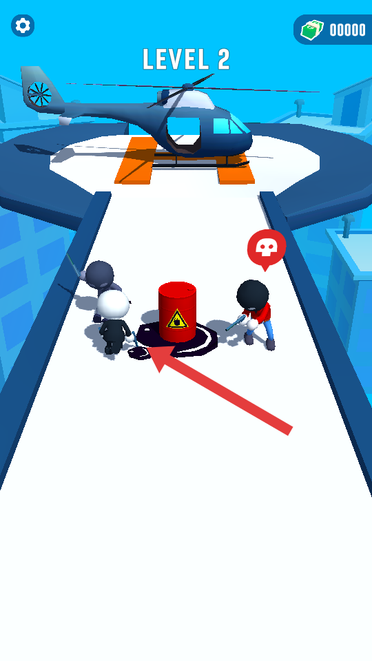 3、遇到帶有警示標(biāo)志的紅色油桶等元素時,留意戰(zhàn)斗范圍,避免誤觸干擾,向關(guān)卡終點(diǎn)的直升機(jī)推進(jìn),達(dá)成目標(biāo)。