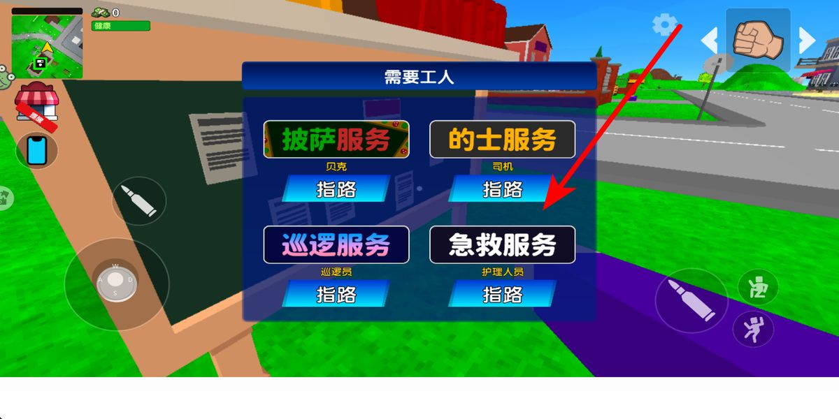 1、進(jìn)入游戲后,會(huì)看到有披薩服務(wù)的士服務(wù)等不同類型的任務(wù)選項(xiàng),選擇想要承接的任務(wù),開(kāi)啟在像素世界的任務(wù)冒險(xiǎn)之旅。