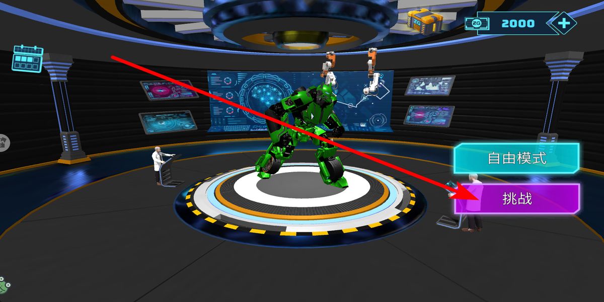 1、打開游戲應(yīng)用進(jìn)入游戲后,在自由模式和挑戰(zhàn)模式中,選擇挑戰(zhàn)模式,進(jìn)入挑戰(zhàn)準(zhǔn)備界面,為接下來的機(jī)甲戰(zhàn)斗做好準(zhǔn)備。