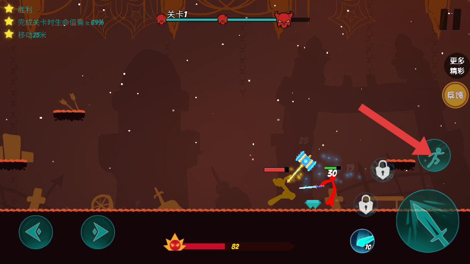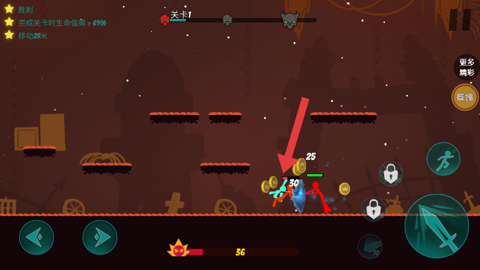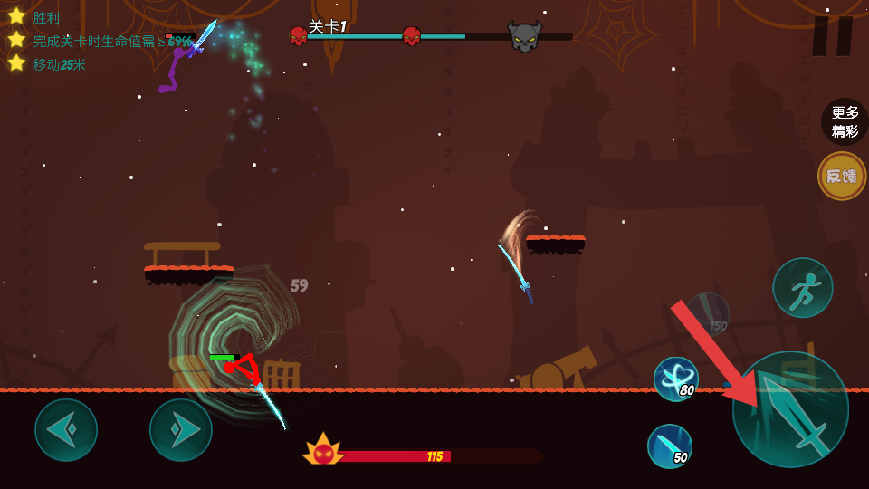 2、手指操控釋放連招:用手指精準控制火柴人動作,通過“點擊普攻+滑動釋放技能”的組合,觸發(fā)專屬連招,比如連續(xù)的點擊后上滑釋放大招,最大化的輸出傷害。