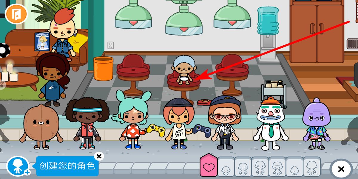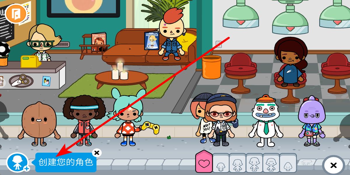 1、新人開始游戲后,在理發(fā)店場景中,找到創(chuàng)建您的角色按鈕并點擊,開啟在小鎮(zhèn)的角色創(chuàng)建之旅,準(zhǔn)備塑造屬于自己的獨特角色。