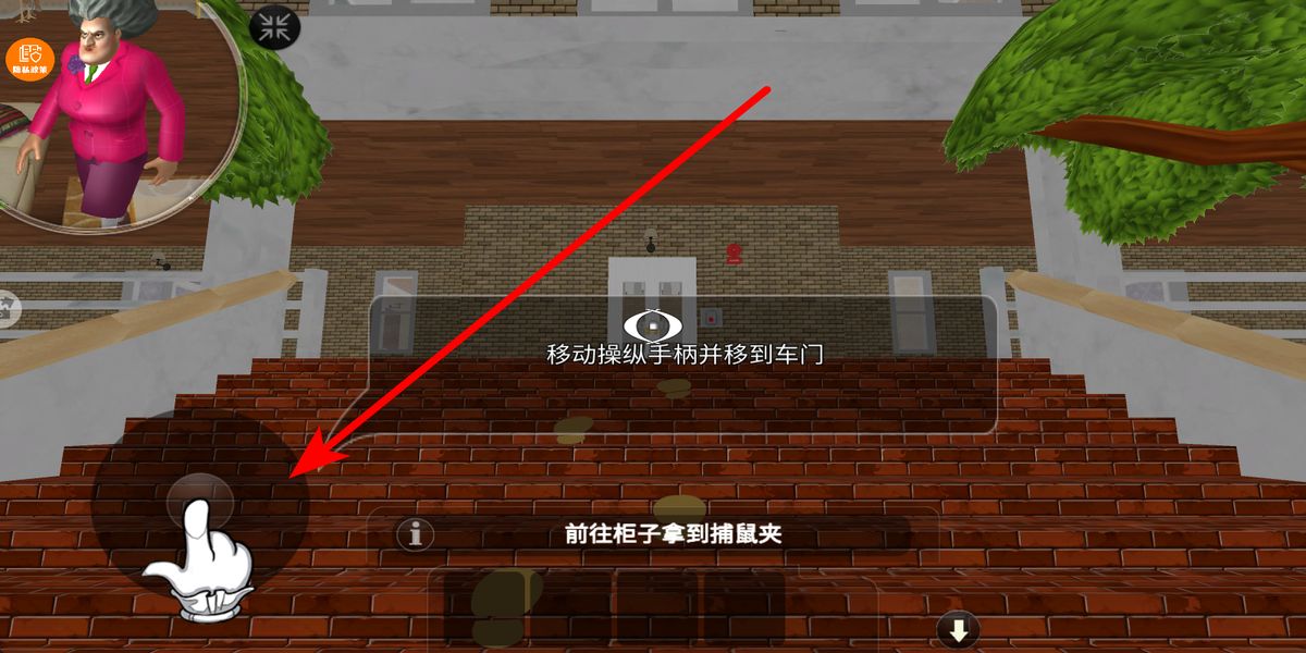 1、開始游戲,看到移動操縱手柄相關(guān)提示,操控角色移動,沿著樓梯等路徑前進,朝著目標柜子的方向靠近,開啟拿取物品的任務進程。