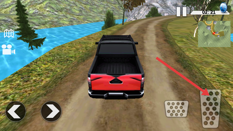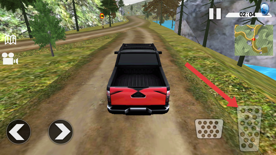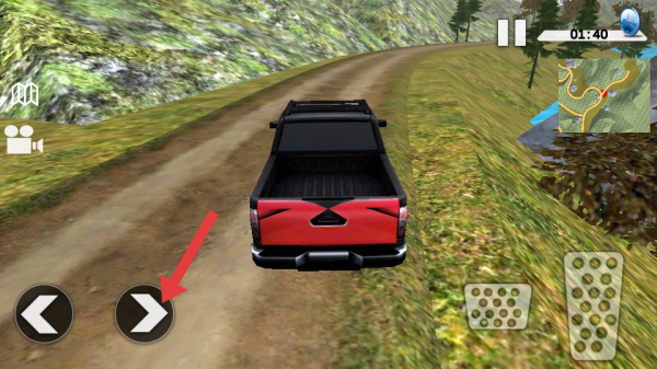 1、先熟悉紅色皮卡車操控方式,通過方向盤圖標(biāo)控制方向,油門和剎車按鍵調(diào)節(jié)車速,避免因車速過快導(dǎo)致失控。