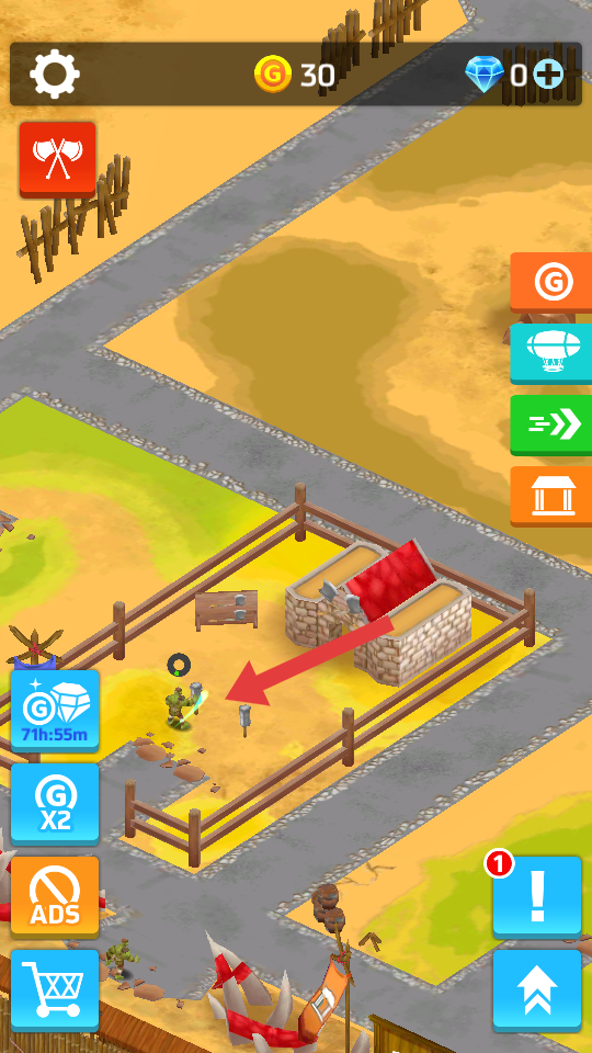 1、進(jìn)入村莊建設(shè)游戲后,關(guān)注畫面中顯示,初期通過完成系統(tǒng)引導(dǎo)任務(wù),如搭建基礎(chǔ)木質(zhì)建筑、圍合簡易圍欄。